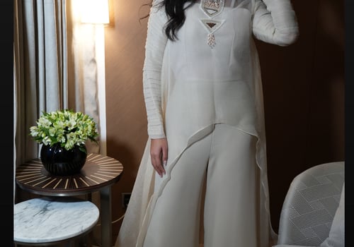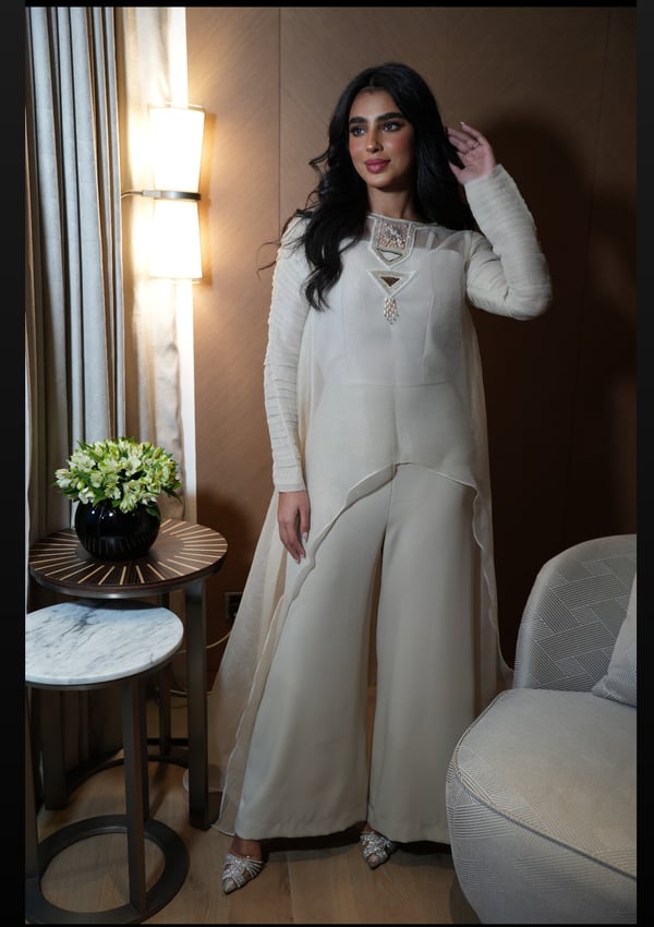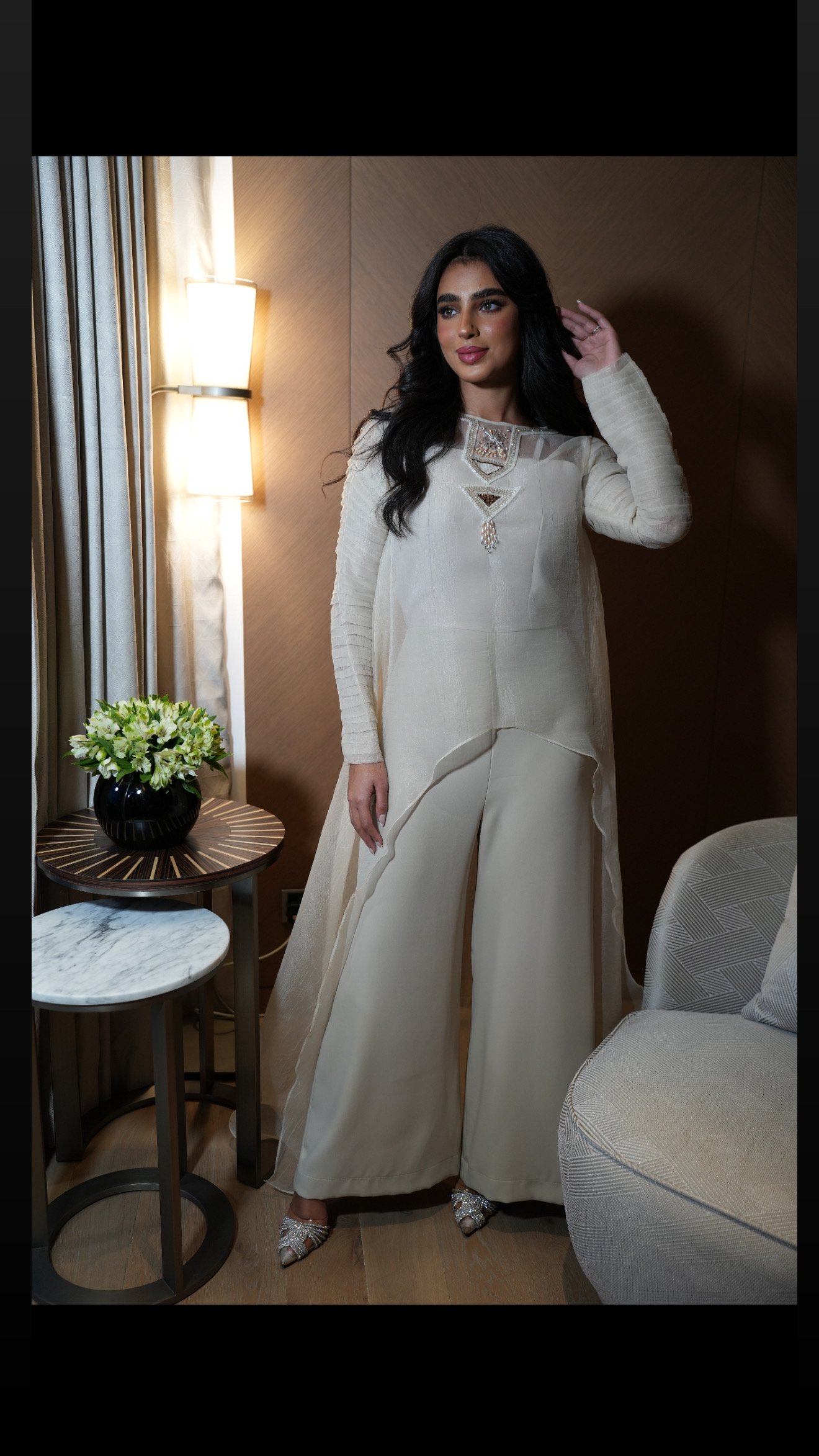 بدلة قطعتين مع شك يدوي ...يمكن تغيير الجمبسوت الى فستان