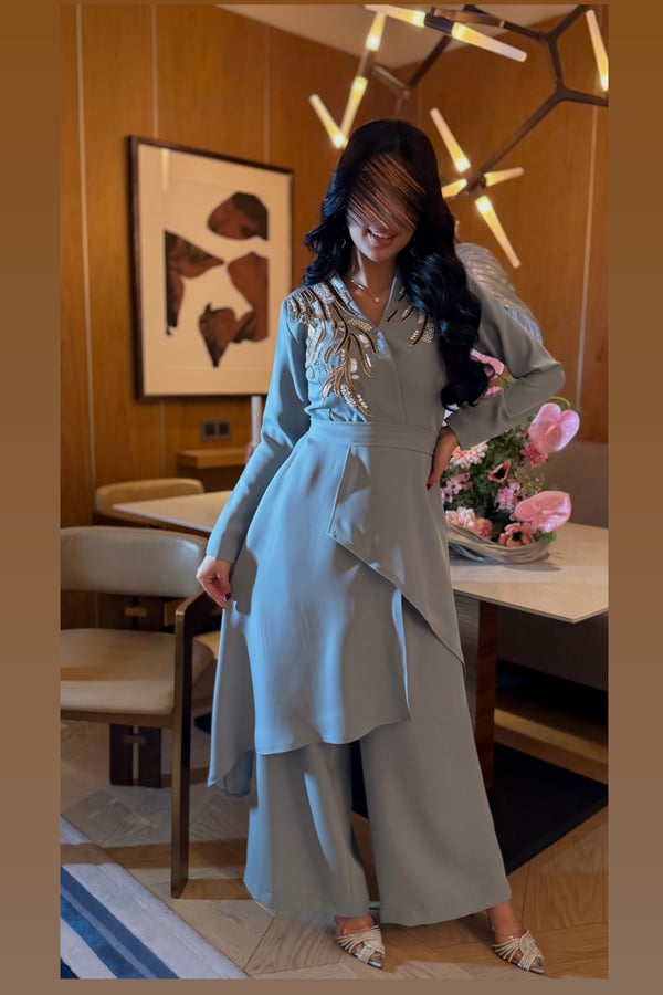 بدلة من قطعتين مع شك يدوي ... يمكنكم تغيير البنطرون الى تنورة