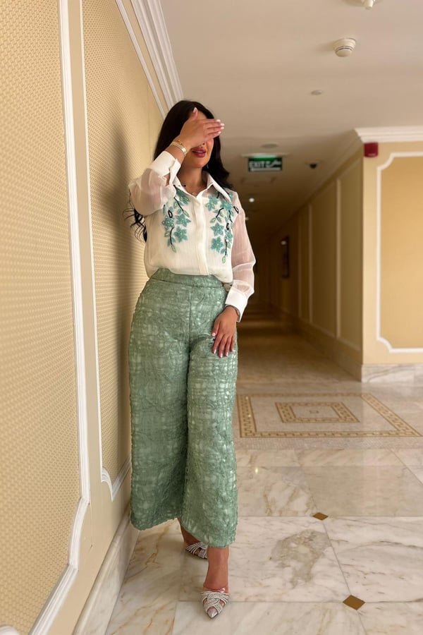 بدلة من قطعتين مشكوكة يدويا ... يم...